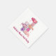 Fun paper party napkin features stacked bottles of nail polish in a variety of colors with customizable pink text. Perfect for spa parties.