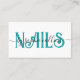 Ein bearbeitbarer Nail-Künstler Visitenkartendesign, mit Social Media-Handles und aquamariner Vintager Typografie kontrastiert mit Ihrem Namen im Skript.