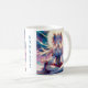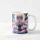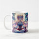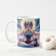 Ätherisch rosa und blaues Anime Mädchen meditieren unter dem Vollmond.