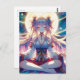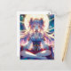 Ätherisch rosa und blaues Anime Mädchen meditieren unter dem Vollmond.