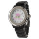 Uhr, Klassische Damenuhr mit schwarzen Lederarmband