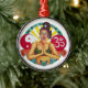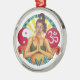 Originelle Kunst von Sandra Gale auf einem runden Ornament mit einem inspirierenden Design mit dem Zeichen für ohm, yin-yang, und andere mit einer schönen Frau meditieren. Ein einzigartiges und farbenfrohes Design der Spiritualität, das perfekt für jeden ist.