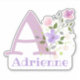 Personalisieren Sie jedes Element mit einem Namen und Initial mit einem Blumen-Design-Ausschneidungs-Sticker. Beispielname ist Adrienne.