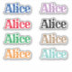 Farbige Aufkleber mit dem Christlichen Namen Alice.