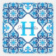 💙 🤍 Name + anfänglich blau - weiß Azulejos X, Quadratischer Aufkleber