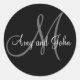 Name & Anfangsbuchstabe Hochzeitsticker Schwarz Runder Aufkleber