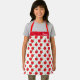 Eine Schürze mit roten Äpfeln und halbierten Äpfeln auf weißem Hintergrund. Die Schürze enthält oben ein rotes Band mit einem anpassbaren Namen in weißem Text.