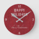 Name auf Happy Holidays Red Denim Print 8-in Runde Wanduhr