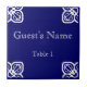 Platzieren Sie die Namenskarte auf die spanische Kachel. Doppelt als Trivet-Gefallen, oder sie können gesammelt werden, um eine Erinnerungswand nach dem Ereignis zu machen. Die Hintergrundfarbe kann an Ihr Hochzeitstil angepasst werden. Sie könnten sogar ein Foto hinzufügen, wenn Sie gewollt haben.