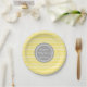 Name-Baby-Duschen-Teller-Gelb-graues Zickzack Pappteller