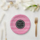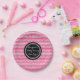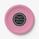 Kundengerechter Name ist es Teller eines Mädchenbabyduschen-Party im hellen pinkfarbenen Rosa des Spaßes und des Chic, retro Zickzack Zickzackstreifenschwarzweiss-muster.