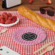 Name-Baby-Duschen-Teller-Schwarz-Rosa Zickzack Pappteller