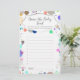 Diese Babydusche-Spielkarte bietet einen modernen Schriftart auf dem Hintergrund der Konfetti-Polka-Polka-Multicolor, der perfekt für ein Gender-Enthüllung Babydusche ist!