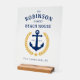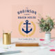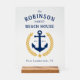 Personalisieren Sie Ihre Zuhause mit einem stilvollen Akrylysseeschema Schild. Geben Sie einfach Ihren Familiennamen, das Strandhaus (oder die Seehütte usw.), das feststehende Datum und den Ort oder den gewünschten Text ein. Einfach anpassbar. Zu den Design-Features zählen ein maßgeschneiderter Bootsanker in klassischem Marineblau mit goldfarbenen Lorbeerfisch-Blätter und ein Stern auf durchsichtigem Acryl.