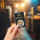 Mit goldfarbenem Text für Ihren Namen und Beruf, auf beiden Seiten mit goldfarbenem Foto auf schwarzem Hintergrund.