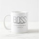 Eine BOSS-Tasse mit Ihrem Namen, dem Namen Ihrer Firma und ihrem Gründungsdatum. Das Design ist in Grau und Schwarz gehalten. Fügen Sie einfach Ihre Informationen hinzu, fügen Sie diese Tasse Ihrem Warenkorb hinzu und trinken Sie Ihren Kaffee wie den Chef, den Sie sind. Name Black Gray Boss Coffee Tasse Holidayday Design | ©Melissa Patton - Designer