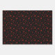 Diese Packpapierblätter weisen auf dem ersten Blatt ein Muster roter Herzen auf schwarzem Hintergrund auf. Blatt Nr. 2 Koordinaten in schwarz. Blatt Nr. 3 Koordinaten in einem Namen (der personalisiert werden kann) in schwarz auf einem roten Hintergrund.