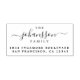 Chic, modern und einfach Rücksendeadresse Gummi Briefmarke mit Ihrem Familiennamen in elegantem Drehbuch. Erstellen Sie einfach Ihre eigene Rücksendeadresse Gummi Briefmarke und fügen Sie Ihren Namen und Ihre Adresse zu Ihrer persönlichen Korrespondenz hinzu. Exklusiv für Sie entworfen von Happy Dolphin Studio. Wenn Sie Hilfe oder passende Produkte benötigen, kontaktieren Sie uns bitte unter happydolphinstudio@outlook.com.