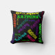 Schwarzes Kissen mit der poppenden Farbe Name Collage in Kalkgrün, Aqua Blau, Gelb, Grau, Lila und Vivid Blau. Mit einem personalisierten Kissen mit beliebigen Namen fühlen Sie sich ganz besonders wohl. Klicken Sie auf Anpassen, bearbeiten, um die Hintergrundfarbe zu ändern. Einfache Namensvorlage oder Hinzufügen von Fotos, um sich selbst anzupassen. Angepasster Geburtstag, Gratulation oder jeden Tag, Gefallen, Glück, Spaß und Festlichkeit.