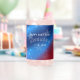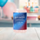 "Happy Birthday America!, 1776-2026" and name (on back) in white lettering are featured on this trendy 16oz. drinking glass resembling a beverage can. The background is a colorful patriotic pattern of abstract stars and stripes with gradient colors. Easily change name and text to make it yours using the Template provided. To edit, change fonts style-color-size and more-- use the Design Tool. See "About" for more information. ===>Hand wash only.<===