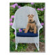 niedlicher walisischer Terrier sitzt auf weißem Korbsessel im Garten von Rhododendron für den allgemeinen Namenstag