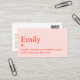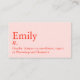 Custom modern and professional business card design with a dictionary definition design style. With template fields for name, company name/title, contact information and QR code (delete if you prefer). Minimalist simple modern red text on pink background. Change background colors, move and resize elements with the customization tool. ©Marisu Valencia