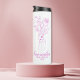 Stilvolle thermische Taumelin mit einer zarten rosafarbenen Linienkunst einer Hand hält Wildblumen. Personalisiert mit dem Namen Ihrer Trauzeugin, ist dieses elegante Design ein unvergessliches Geschenk für Junggeselinnen-Abschied, Brautbrunches oder Hochzeitstag-Mimosen. Weiblich, modern und vollständig wiederverwendbar.
