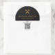 Ein Beruflicher Notaraufkleber mit schwarz-weißem Notarzbild, der einen goldgekreuzten Skelettschlüssel und das Stift-Symbol sowie den Notarnamen auf schwarzem Hintergrund und den benutzerdefinierten QR-Code enthält.