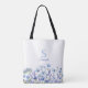 Eleganter blauer Totenbeutel mit Monogramm und Namen. Einfach den Text ändern. Feine, hübsche Aquarell-Wildblume.