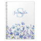 Delikate blaue Aquarellschrift Wildblume Blumenheft mit Monogramm und Namen. Für Schule oder Büro. Einfach den Text ändern.