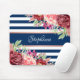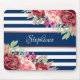 Name der Borgundy Floral Navy Stripes Monogramm Mousepad
