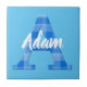 Name der Jungen mit Buchstabe A Initial. Blaues kariertes Musterbild. Dekorative Keramik Fliesen für Kinderzimmer. Text kann bearbeitet werden, um diese Kachel einzigartig zu machen.