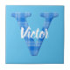 Name der Jungen mit Buchstabe V initiale. Blaues kariertes Musterbild. Dekorative Keramik Fliesen für Kinderzimmer. Text kann bearbeitet werden, um diese Kachel einzigartig zu machen.