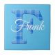 Name der Jungen mit Buchstabe F Initial. Blaues kariertes Musterbild. Dekorative Keramik Fliesen für Kinderzimmer. Text kann bearbeitet werden, um diese Kachel einzigartig zu machen.