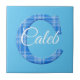 Name der Jungen mit Buchstabe C initial. Blaues kariertes Musterbild. Dekorative Keramik Fliesen für Kinderzimmer. Text kann bearbeitet werden, um diese Kachel einzigartig zu machen.
