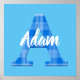 Name der Jungen mit Buchstabe A Initial. Blaues kariertes Musterbild. Dekoratives Plakat für das Zimmer des Jungen. Text kann bearbeitet werden, um dieses Poster einzigartig zu machen.