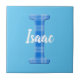 Name der Jungen mit dem Buchstaben I initiale. Blaues kariertes Musterbild. Dekorative Keramik Fliesen für Kinderzimmer. Text kann bearbeitet werden, um diese Kachel einzigartig zu machen.
