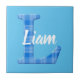 Name der Jungen mit Buchstabe L initial. Blaues kariertes Musterbild. Dekorative Keramik Fliesen für Kinderzimmer. Text kann bearbeitet werden, um diese Kachel einzigartig zu machen.