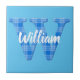Name der Jungen mit Buchstabe W anfänglich. Blaues kariertes Musterbild. Dekorative Keramik Fliesen für Kinderzimmer. Text kann bearbeitet werden, um diese Kachel einzigartig zu machen.