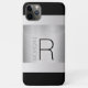 Personalisieren Sie Ihre Monogramm und Ihren Namen auf gebürstetem Silbermetall für einen zeitgemäßen und dynamischen Look in Schwarz und Grau. Ein einfacher, moderner Stil mit schwarzem Hintergrund, der Ihren iPhone Case perfekt anzieht. Macht ein großartiges Geschenk.