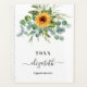 Ein weißer Hintergrund. Mit Sonnenblumen geschmückt und mit Eukalyptus-Pflanzen geschmückt. Fügen Sie einen Namen, Text hinzu. Der Name wird mit einem modernen handgeschriebenen Stilskript mit Swashes geschrieben. Um die Swashes behalten, löschen Sie nur den Beispielnamen, verlass die Leerzeichen oder Emoji's vor und nach dem Namen.