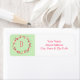 Dieses Adressetikett zeichnet sich durch einen rosa Blumenkranz auf einem hellgrünen Hintergrund aus. Personalisieren Sie Ihre Monografie und Adresse.