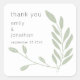 Ein modernes Design für Ihre Favoriten mit künstlerischen Salbei-Grün-Blätter und vereinfachender Typografie mit Ihrem Dankeschön, Namen und Hochzeitsdatum, das Sie leicht personalisieren können.