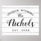 Maßgeschneiderte Bauernwandkunst mit Ihrem Familiennamen Monogramm und feststehendes Datum auf einem Imitat liefern Holz Hintergrund. Passen Sie es mit Ihrem eigenen Text und Bildern an, um ein einzigartiges Zeichen zu erstellen.
