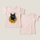 Sonnenblumen und schwarze Katze Baby-Tee, oder Transfer zu Erwachsenen T - Shirt, Tank oder Sweatshirt. Anpassen des gebogenen Textes in dunkelbrauner Farbe, oben mit dem Namen des Bauernhofs oder einem beliebigen Text. Fügen Sie auch das Jahr für eine Ranch, Bauernhaus, oder Häuser eingerichtet. Auf einem pfirsichrosa Shirt des Kleinkindes gezeigt.
