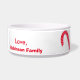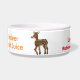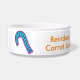Rentier Carrot Juice ist in orangefarbenem Text geschrieben. Personalisieren Sie Liebe, Familienname. Die rosa Blauen und die roten, weißen Kanälen sind auf den Seiten der Schüssel. Niedlicher Cartoon-Charakter Super Snow der Blue-mit Augen Rentier. Spaß Festliche Weihnachtskuchen Erinnerungen. Original Artwork © 2016 TamiraZDesign.
