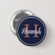 Button für moderne Navy Blue und Pink Mit Monogramm Script Name Button - Um den Hintergrund, das Monogramm und die Namensfarben anzupassen, klicken Sie auf die Schaltfläche "Diese Vorlage personalisieren" und klicken Sie dann auf "Bearbeiten mit dem Design-Tool".