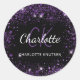 Name der Monogramm-Initialen des lila Glitzer Runder Aufkleber