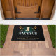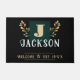 Helle fette Familienname Monogram Welcome Mat. Schönes Design mit floralen Zweigen mit fett ersten Monogramm Familiennamen. Willkommen und Datum