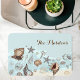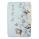 Mit diesen Muscheln und der Sandbadematte verwandeln Sie Ihr Bad in einen Retreat an der Küste. Dieses Design besticht durch eine Vielzahl realistisch gezeichnet Muscheln, die auf einem sandigen ত verstreut sind, das Set auf einem sanften, blauen Hintergrund und der Platz für einen Familiennamen. Dieses weiche und absorbierende Produkt ist optisch ansprechend und bietet eine komfortable und sichere Oberfläche. Verbessern Sie Ihre Zuhause mit diesem stilvollen, strandorientierten Akzent.